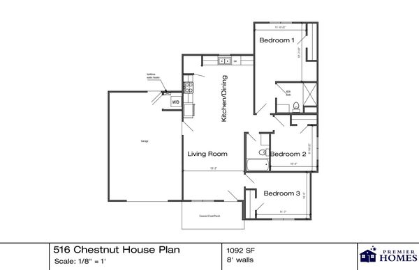 one level slab, kitchen appliances, kitchen pantry, covered porch